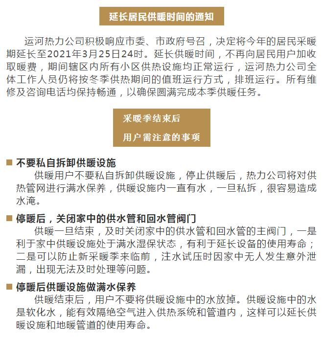 運河熱力關于延長居民供暖時間的通知