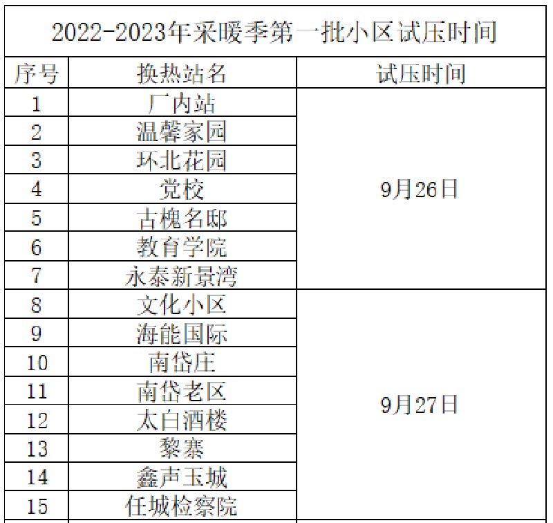 第二批試壓小區(qū)的試壓時間另行通知,請廣大用戶留意公眾號發(fā)布信息。