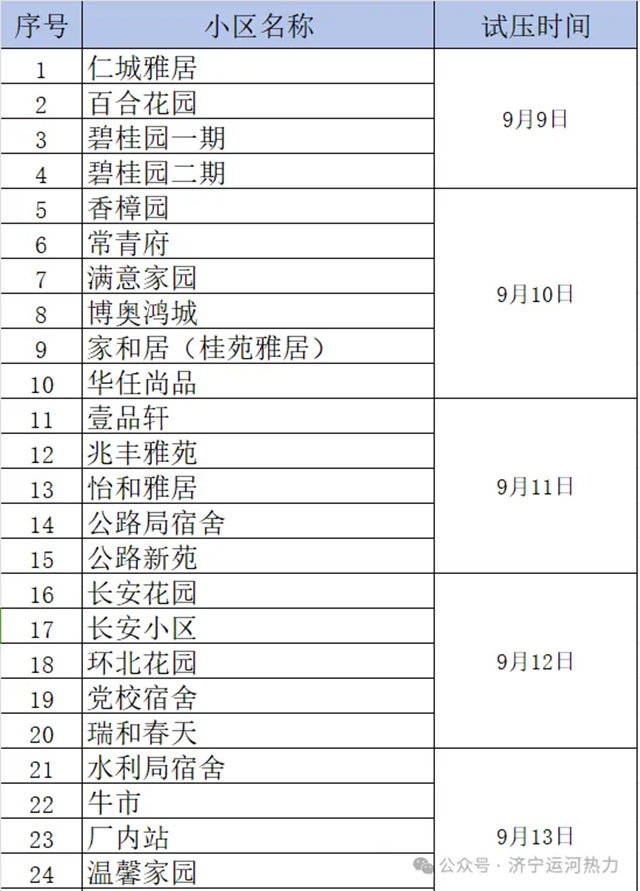 第二批試壓小區(qū)的試壓時間另行通知,請廣大用戶留意公眾號發(fā)布信息及單元通知欄張貼信息。