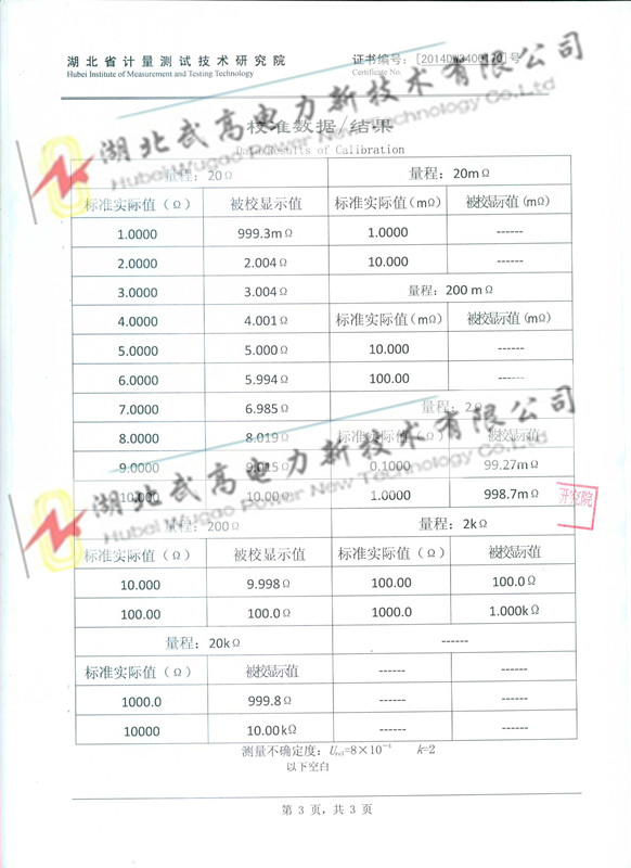 、20 mΩ~200mΩ、0.2Ω~2Ω)