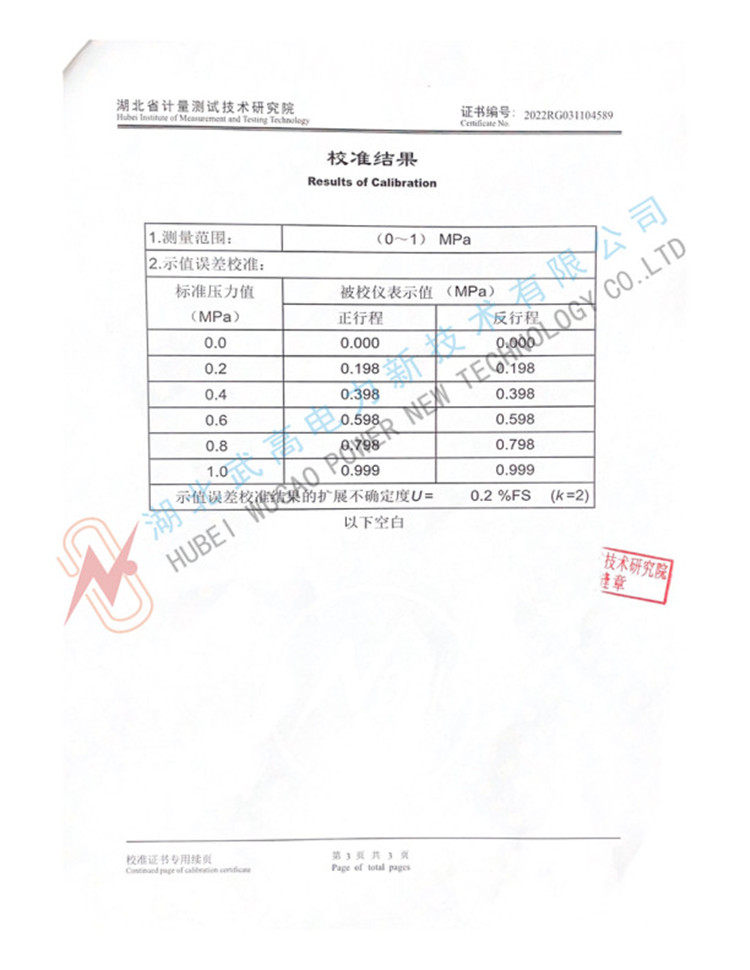 2.常溫氣體壓力表:0~1MPa任意壓力點(diǎn)校驗(yàn)
