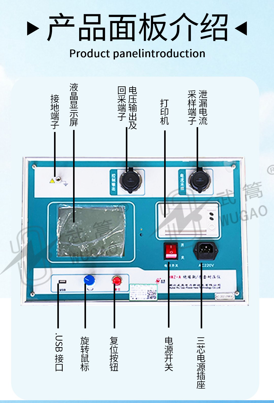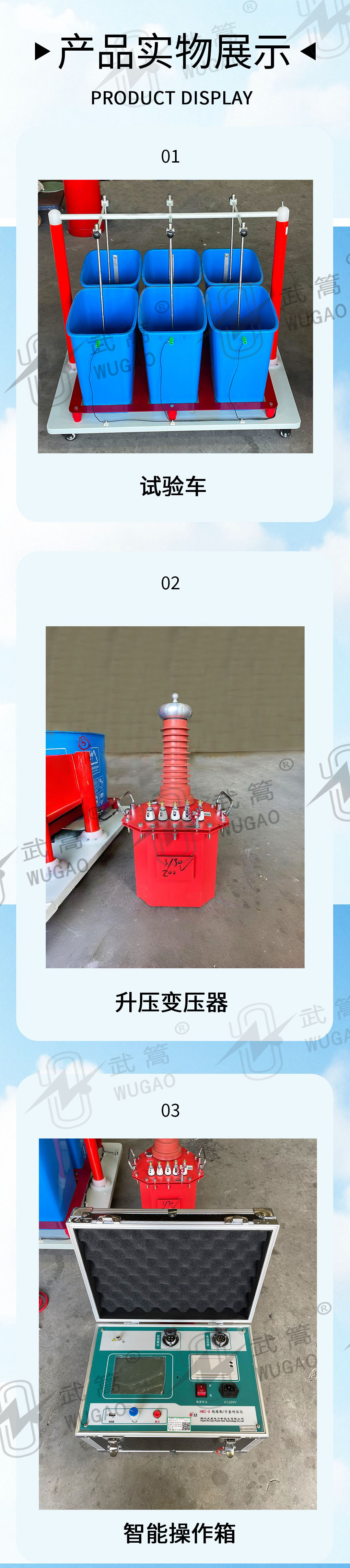 該產(chǎn)品采用先進(jìn)的微電子處理技術(shù),全部使用過(guò)程可提前進(jìn)行設(shè)置,全中文界面,操作簡(jiǎn)單明了。全部測(cè)試項(xiàng)目設(shè)定后自動(dòng)進(jìn)行測(cè)試 工作原理 Working principle 接入0~220V電源,根據(jù)電磁感應(yīng)原理,使變壓器產(chǎn)生0~30KV工頻高壓至各電極,使絕緣靴(手套)獲得規(guī)定的試驗(yàn)電壓。根據(jù)絕緣靴(手套)試驗(yàn)規(guī)程,讀取、記錄測(cè)試參數(shù)。 產(chǎn)品組成 Product composition 1. 絕緣靴(手套)試驗(yàn)車,試驗(yàn)車由:移動(dòng)托架;手套(靴),浸水桶;電極桿支撐等組成; 2. 絕緣靴(手套)操作箱。 3. 升壓變壓器 主要技術(shù)參數(shù) Main technical parameters 1. 輸入電壓:AC220V 50Hz 2. 輸出電壓:0-30kV 3. 容 量:3kVA 4. 測(cè)試數(shù)量:每次6只 5. 測(cè)量數(shù)據(jù):可顯示打印每只被試品電壓值;泄漏電流值 6. 過(guò)流保護(hù);過(guò)壓保護(hù);自定義時(shí)間、電壓、泄漏電流值 7. 液晶顯示,全中文菜單操作,帶打印 8. 測(cè)量準(zhǔn)確度:電壓±2%(±3個(gè)字)電流±2%(±3個(gè)字) 9. 質(zhì)量:絕緣靴(手套)操作箱12Kg 試驗(yàn)變壓器22kg,絕緣靴(手套)試驗(yàn)車25kg。 使用說(shuō)明 Instructions for use 實(shí)驗(yàn)之前 安全注意事項(xiàng) 1.為保護(hù)設(shè)備及人身安全,試驗(yàn)前請(qǐng)?jiān)敿?xì)閱讀使用說(shuō)明書,嚴(yán)格按照說(shuō)明書要求操作。 2.儀器工作電源為單一電源:交流220V。應(yīng)使用儀器配備的電源線或20A以上的電源線。 3.為確保安全,儀器配有保護(hù)接地端子,試驗(yàn)前務(wù)必將試驗(yàn)車和操作箱的接地端子可靠接地。 4.為確保采樣準(zhǔn)確,請(qǐng)確保試驗(yàn)車和操作箱上的接地端與地網(wǎng)相連,并確保兩個(gè)接地端可靠連接在同一個(gè)地網(wǎng),接地電阻應(yīng)小于0.1Ω。 5.該裝置在試驗(yàn)過(guò)程中,操作人員應(yīng)預(yù)留足夠安全操作距離(空氣中每米小于20kV)。 6.使用前應(yīng)測(cè)試變壓器絕緣電阻,其輸入對(duì)地絕緣電阻值應(yīng)大于2MΩ 7.使用前應(yīng)檢查各電氣元件觸點(diǎn)是否松動(dòng),接觸是否良好,各保護(hù)系統(tǒng)是否能正常工作 8.使用前 9.試驗(yàn)完畢應(yīng)將水槽內(nèi)的水放完 10.該裝置工作和存放場(chǎng)所應(yīng)無(wú)嚴(yán)重影響絕緣的氣體 11.該裝置必須由專業(yè)人員操作 12.如果遇到什么技術(shù)問(wèn)題,您可以撥打我們24小時(shí)服務(wù)熱線:027-87409251 13871255353 13.本站提供的說(shuō)明書如用于商業(yè)用途,請(qǐng)告訴我們,謝謝合作!